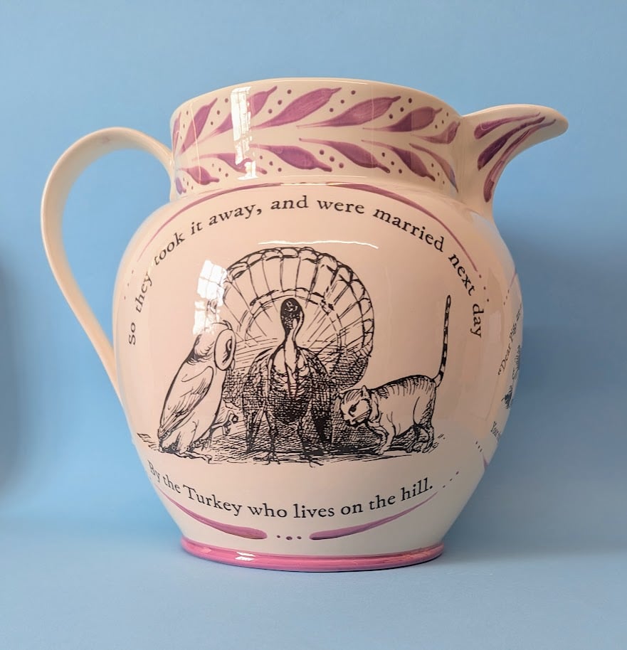 The jug in the photograph is an example. Lustre decoration gives minor variations, the one you will receive will look almost, but not perfectly, identical.