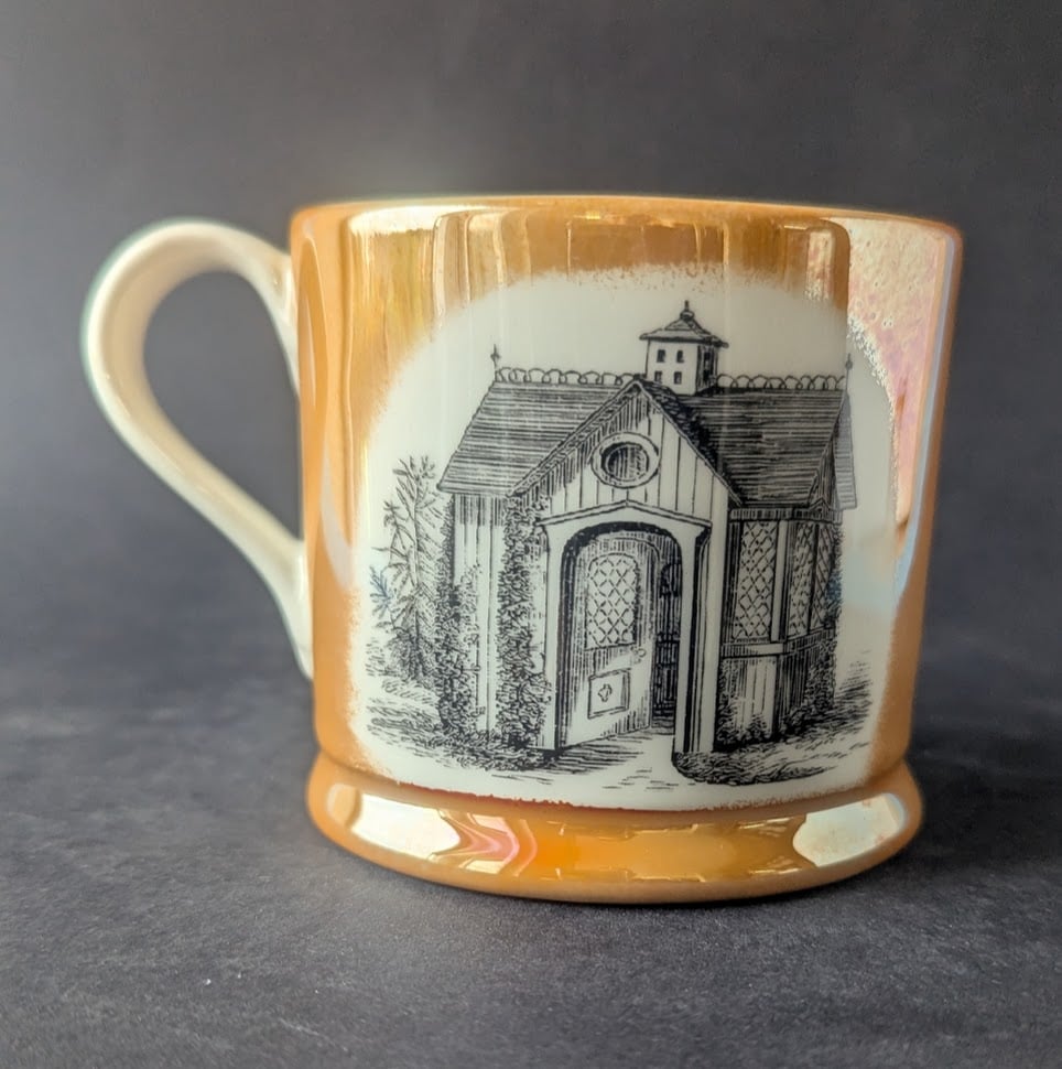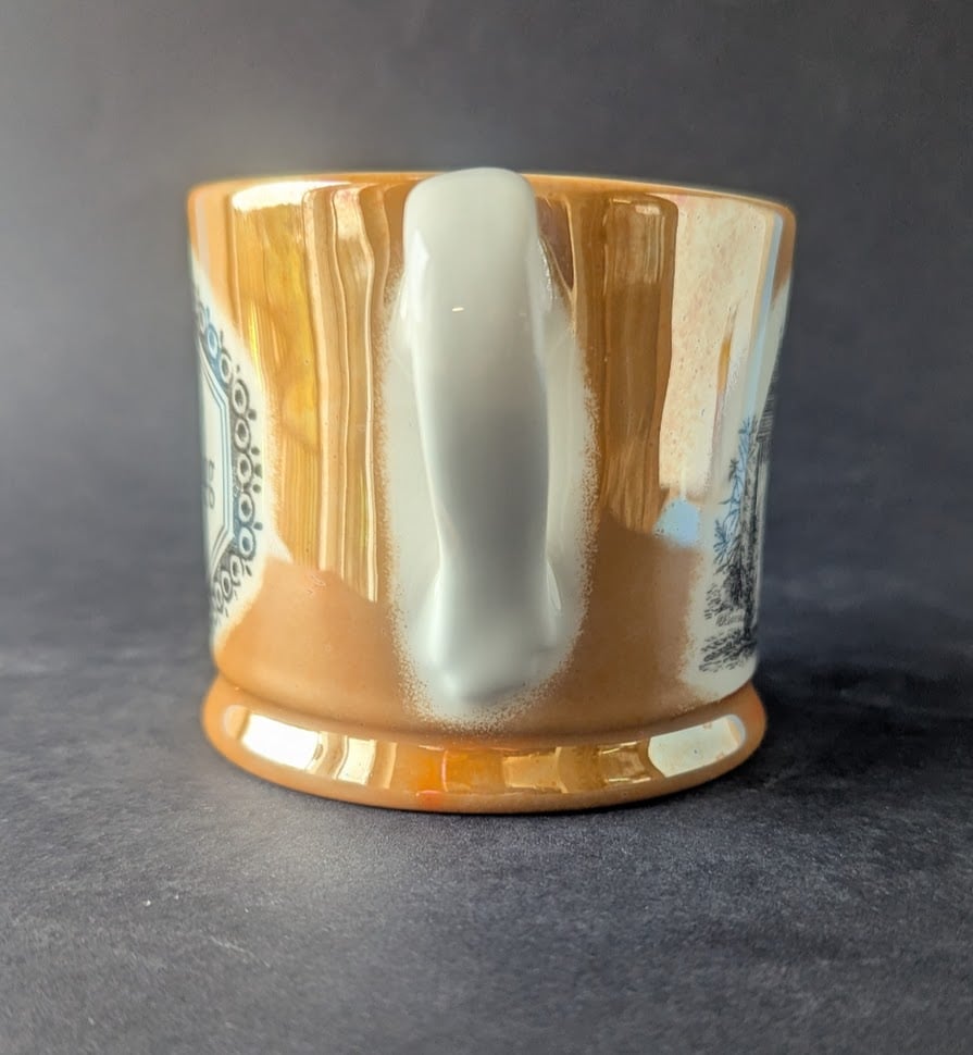 The mug in the photograph is an example. Lustre decoration gives minor variations, the one you will receive will look almost, but not perfectly, identical.